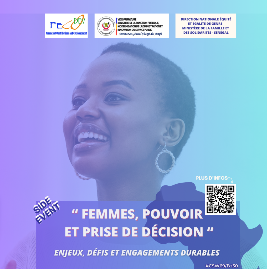Nos deux événements s’inscrivent pleinement dans les engagements de FECODEV pour l’égalité des genres, l’autonomisation des femmes et le respect des standards internationaux (Agendas 2030 et 2063, CEDEF, Protocole de Maputo, Déclaration de Beijing).